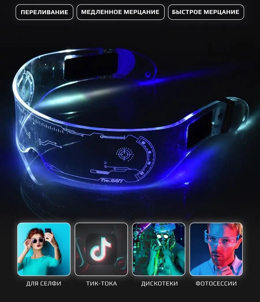 Очки очень красиво светятся! Много режимов, можно выбирать цвет(а) под свой образ. 10/10